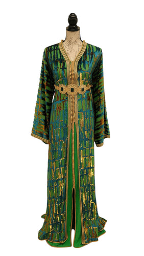 Emerald Green Moroccan Caftan – Two-Piece Satin-Lined