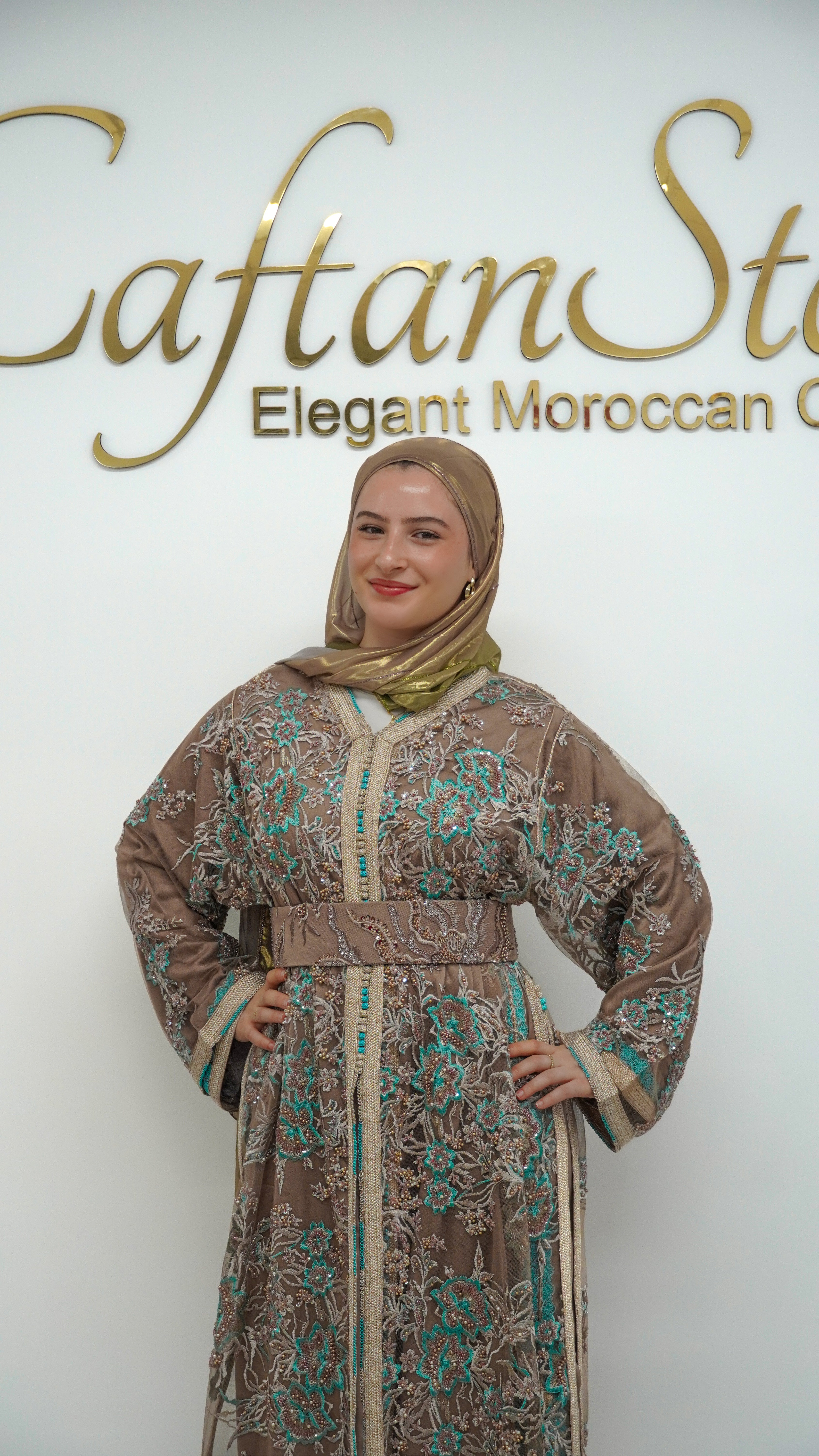 Teal Crepe Takchita with Gold Embellishments – Perfect for Brides & Special Occasions