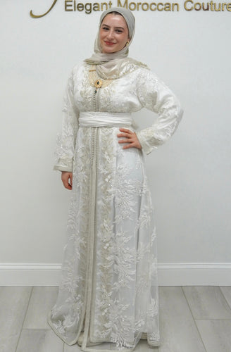 Small Bridal Caftan in Ivory Drap de Soie with Cartier Gold Embroidery