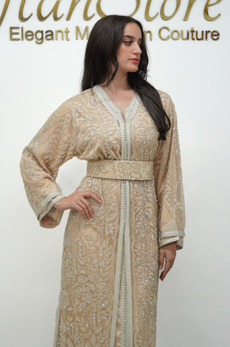 White Caftan with Silver Beading