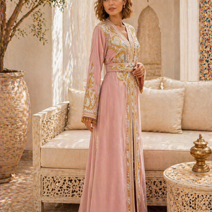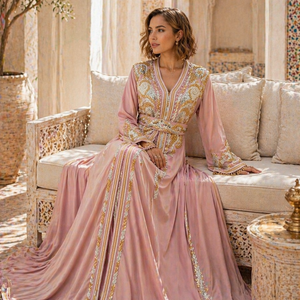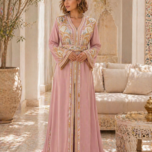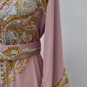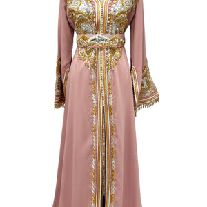 Blush Moroccan Caftan with Gold & Silver Embroidery and Beading