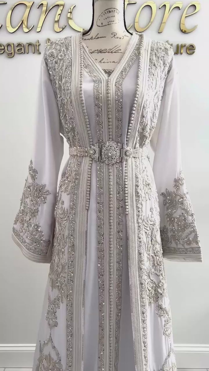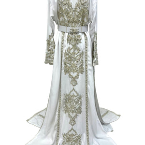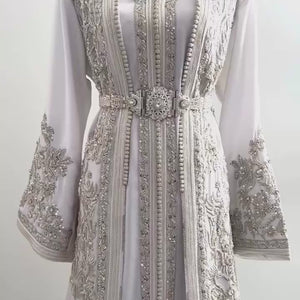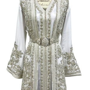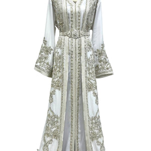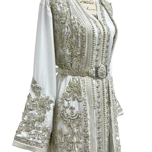 White Moroccan Wedding Takchita with Open Duster Design